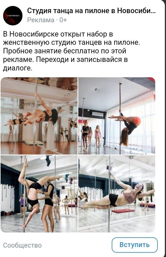 Делюсь новым кейсом по продвижению школы танцев на пилоне в Воротынце
